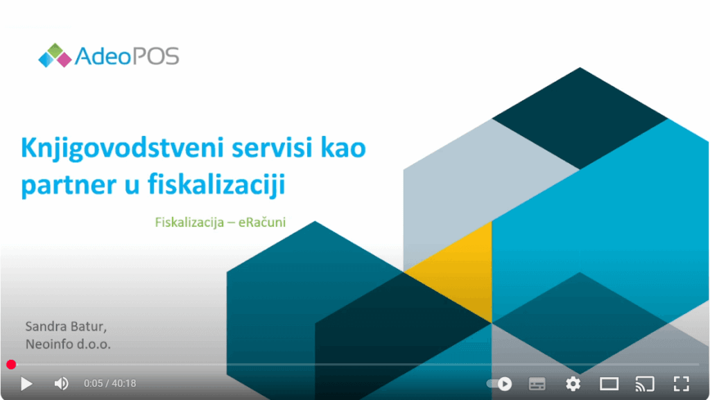 Adeo POS webinar je vaša najbrža i najsigurnija ulazna točka za razumijevanje kako naše rješenje može olakšati rad knjigovodstvenih servisa i unaprijediti usluge za njihove klijente. Pogledajte snimku webinara i javite nam se za demo ili razgovor o partnerstvu.